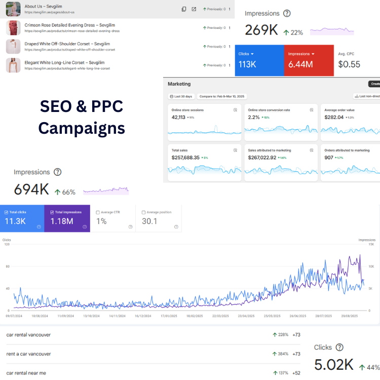 I’m a Vancouver-based digital marketer with hands-on experience across SEO, SEM, content creation, paid campaigns, and analytics. I’ve scaled businesses from near-zero presence to 1.5M+ organic impressions a year and generated 7x ROAS on Google Ads campaigns.